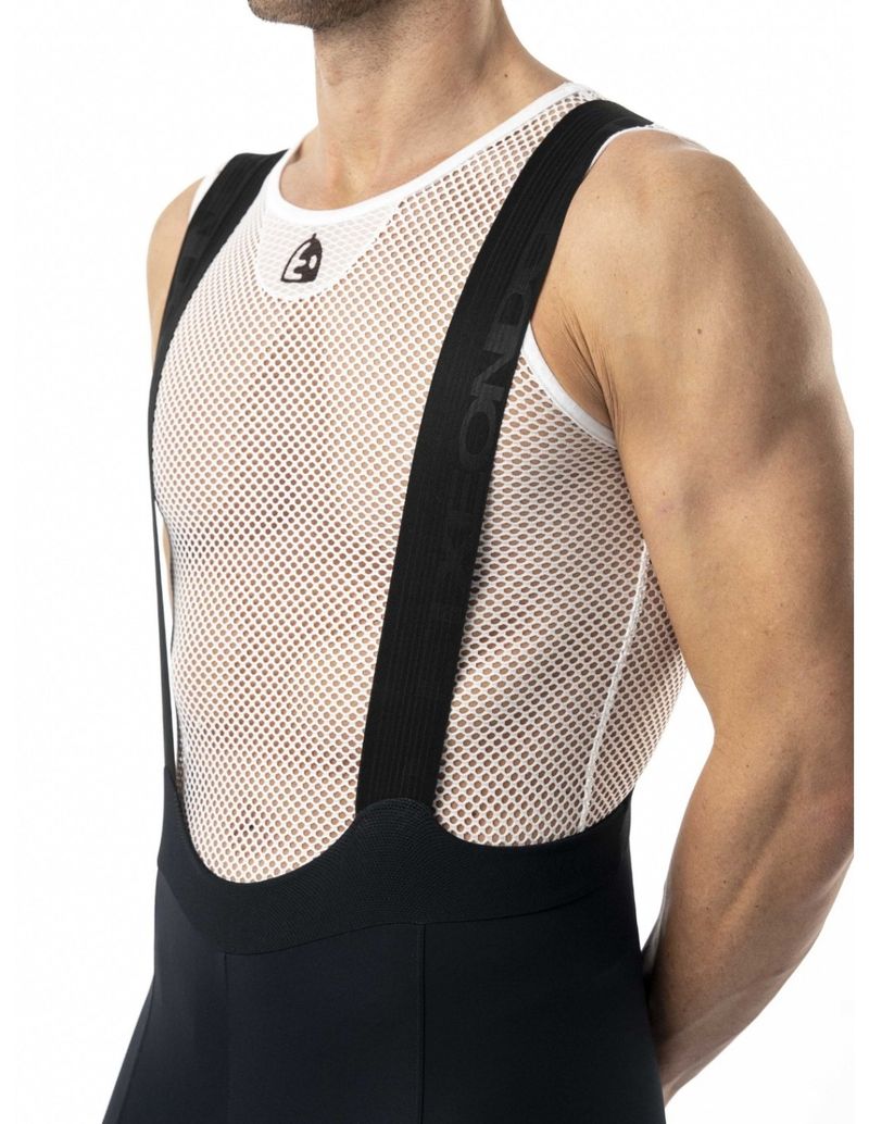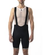 The pattern is designed to achieve comfortable bib shorts, with multiple panels offering moderate compression, eliminating seams on the inner thigh for a precise fit that remains stable throughout the ride, and seamless one-piece straps that prevent chafing and provide a perfect feeling of freedom.